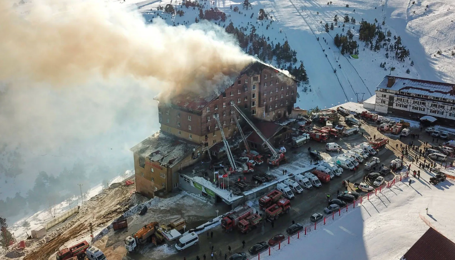 وقالت صحيفة (تركيا اليوم) إن الحريق، الذي نشب في منتجع كارتال كايا للتزلج، بدأ في منطقة مطعم الفندق وسرعان ما اجتاح المبنى بالكامل، لافتة إلى أنه تم إرسال فرق الطوارئ بما فيها رجال الإطفاء والأطقم الطبية إلى مكان الحادث.