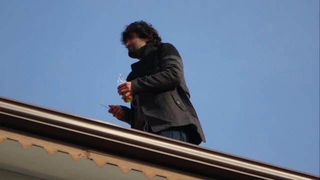 وظهر "حسن" فوق البناية وهو يحمل سكينا وربطة عنق وقارورة بلاستيكية مليئة بالبنزين، مما أثار حالة من الذعر بين المارة.