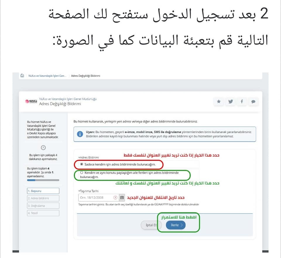 تغيير عنوان السكن عن طريق الأي دولات "E- devlet"