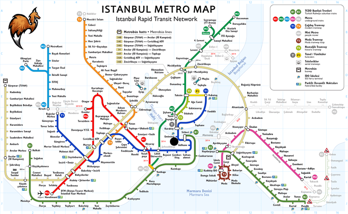 •  Şişli – Mecidiyeköy ، التبديل إلى خط مترو (M7) إلى المتربوس